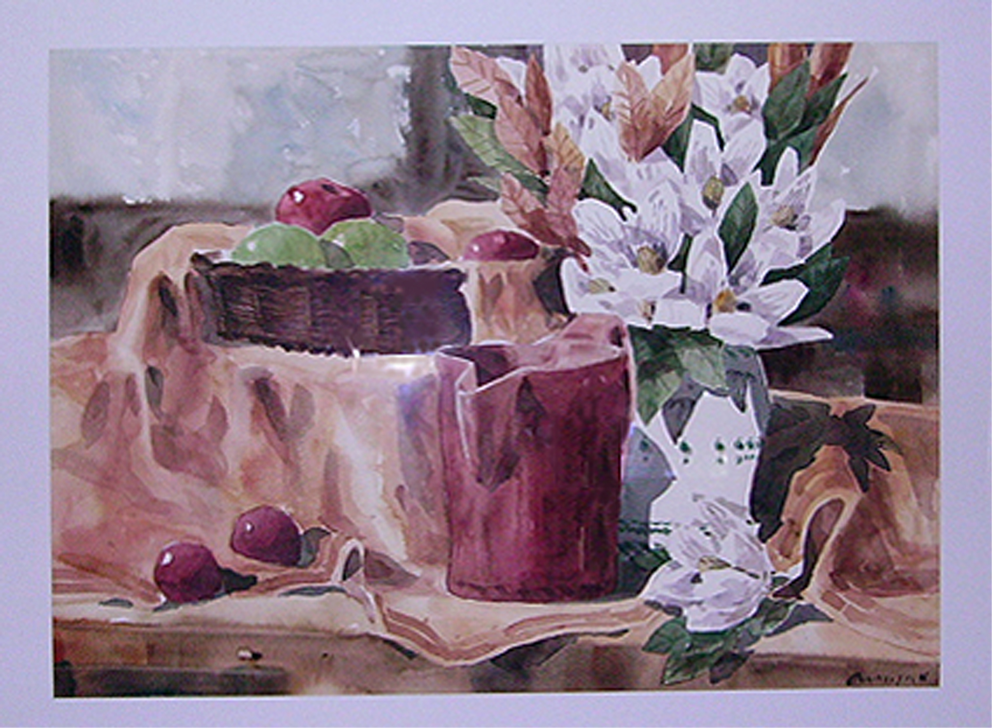 Magnolia y jarra roja 1 acuarela